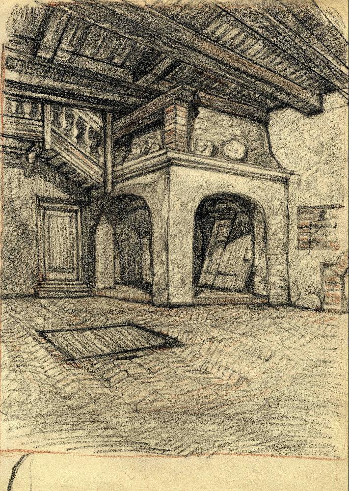 Внутренний вид дома на Маза Пилс, 17. Рисунок А. Крастиньша