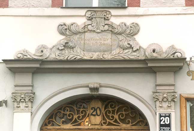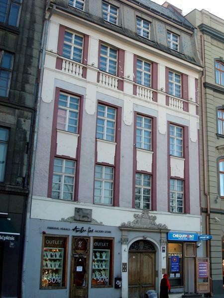Здание на Калькю, 20 одно из самых старых в этом районе, оно появилось здесь ещё в шведские времена, в конце XVII века. Когда уже в наши дни обследовали стены здания, то обнаружили, что они сложены из больших камней, пролежавших на дне реки, скорее всего Даугавы. Когда-то это здание было трёхэтажным, но в 1913 году к нему добавили ещё два этажа и высокую мансарду, так здание получило свой современный вид. От первоначального оформления фасада сохранился красивый входной портал, который венчает небольшой картуш с надписью на немецком языке «Почитание единого Господа Бога есть наша единственная слава». Скорее всего, первый владелец здания, оставшийся неизвестным, был весьма набожным человеком и хотел таким образом защитить свое добро и домочадцев.