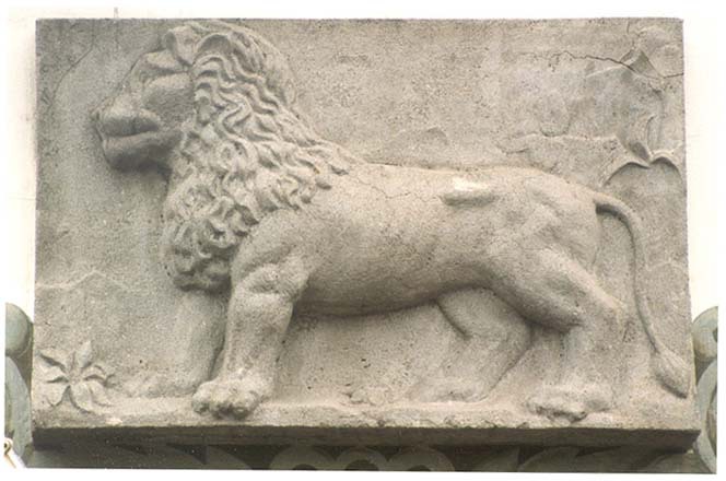 Символом аптеки стал небольшой рельеф с изображением льва. Шло время, аптеки уже давно не было и рижане забыли, по какому случаю на фасаде дома на Калькю, 20 появился этот лев. Кому-то даже показалось, что он мешает и портит фасад, рельеф переместили во двор, а оттуда его украли в 1984 году, в то время многие желали украсить свои дома настоящими историческими реликвиями. Быть может, старинный лев попал в неизвестное ему место и тоскует по той жизни, что была у него на оживлённой Калькю, но его теперешние владельцы вряд ли об этом знают.
