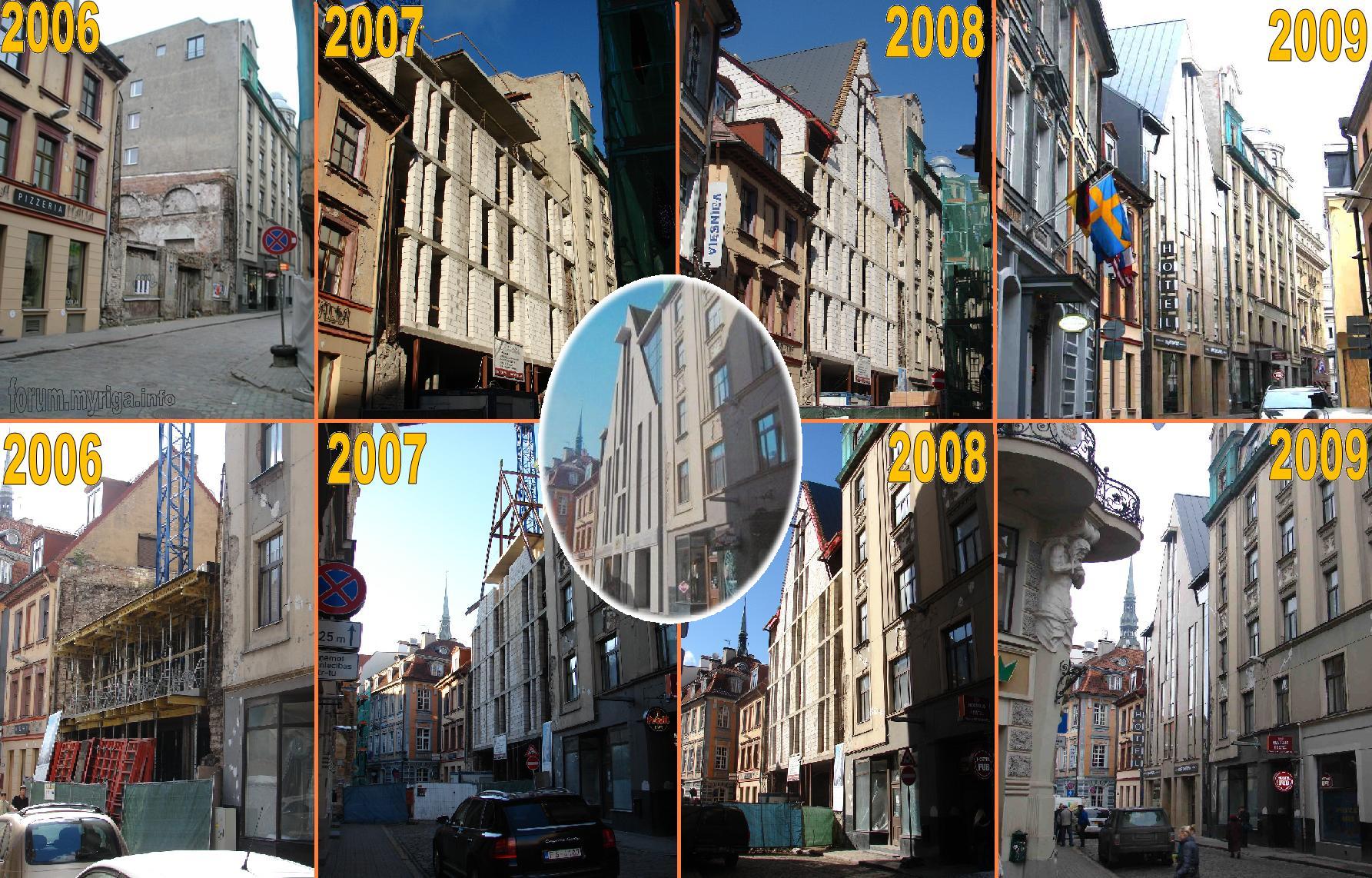 В древних наследственных книгах Риги с 1493 по 1577 год територия между улице Вальню, Муцениеку и Театра упомянута как «сады у речки Ридзене». В то время тут располагались городские огороды. В архиве есть также запись о том, что среди огородов стояло небольшое деревянное жилое строение, сарай и склады. Позднее вокруг были построены другие жилые дома, где жили в основном бедняки. В 1689 году все эти лачужки сгорели, но в 17-м веке строительство велось довольно активно, так что вся територия вскоре была застроена и слилась со старой частью города. Через речку Ридзене вели целых шесть мостов. В те времена улица Театра называлась улица Моста Яню от названия находящегося в этом месте моста.
