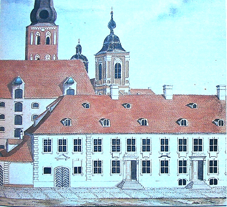 Здание гостиницы появилось на Замковой площади в 1750 году. Первое его изображение мы сможем найти среди рисунков И.Бротце, оно датировано 1791 годом. Это было небольшое двухэтажное здание с высокой черепичной крышей. Гостиница сразу понравилась гостям Риги: здесь останавливались торговцы и путешественники, а также местные помещики, когда приезжали в Ригу по делам. 30 мая 1789 года в гостинице останавливался Николай Михайлович Карамзин, оставивший в своих «Письмах русского путешественника» несколько слов об услужливости хозяина гостиницы. Возможно, поэтому город произвёл на Карамзина благоприятное впечатление.