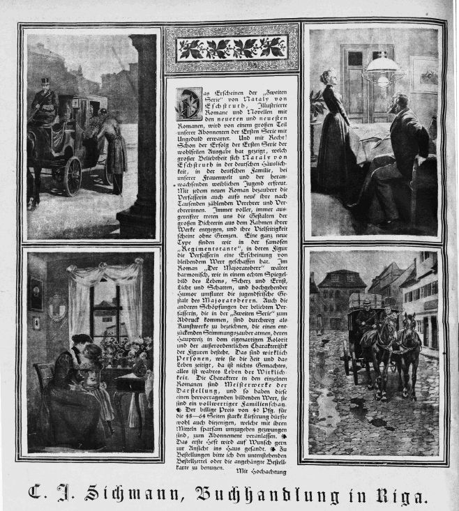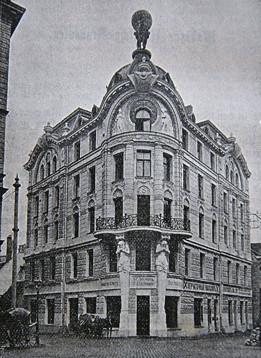 На рубеже веков в моду вошёл новый стиль архитектуры: модерн. Всего за десять-пятнадцать лет в Риге появились сотни домов в этом стиле, и до сих пор наш город может гордо называться метрополией югендстиля, ведь 40 процентов всей исторический застройки Латвийской столицы выполнено именно в этом стиле. Мода на стиль вечной молодости не обошла стороной и закоулки старого города. Вот и на углу улиц Вальню и Театра появилось роскошное здание в стиле модерн. Его владельцем был рижский книготорговец Карл Екаб Зихман.