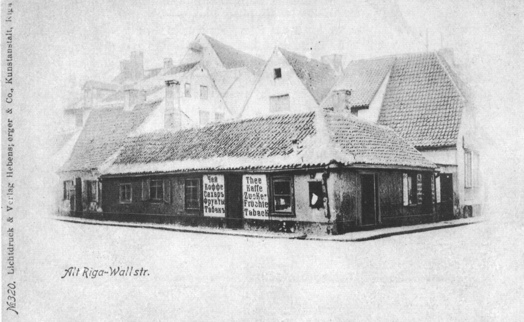 На старой открытке рубежа XIX и XX веков мы можем видеть настоящую идиллию городских окраин. Прямо на углу Вальню и Театра стояла маленькая низенькая лавочка с черепичной крышей. Здесь торговали колониальными товарами: чаем, кофе, сахаром, засушенными фруктами, табаком. За лавочкой виднеются островерхие черепичные крыши небольших амбаров, даже у жилых домов этого района были высокие чердаки. Всюду складировали и продавали всевозможные товары. Несмотря на то, что эти зданьица представляли несомненную историческую ценность, их состояние оставляло желать лучшего. Неудивительно, что вскоре на их место пришли совершенно новые, высокие и комфортабельные строения.