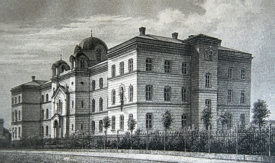 К сожалению, этот пункт выполнить не удалось. Во-первых, на территории кладбища совсем не было места, а во-вторых, строительные правила того времени вообще не разрешали застройку погостов жилыми домами. Комитет нашёл альтернативное решение: богадельню решили возвести на пустующем участке, принадлежавшем Всесвятскому приходу на Малой Мельничной улице. Там в 1874 году по высочайшему повелению и была заложена новая православная богадельня. Её спроектировал знаменитый рижский архитектор Иоганн Даниэль Фельско. По его проекту трёхэтажное здание возводилось в неороманском стиле, фасад украшали нарядные карнизы, наличники и статуи.