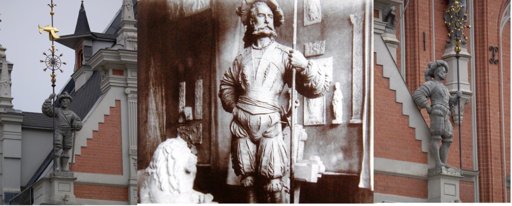Скульптуры ландскнехта в мастерской Фольца и на фасаде здания