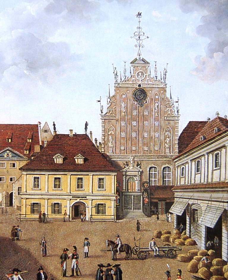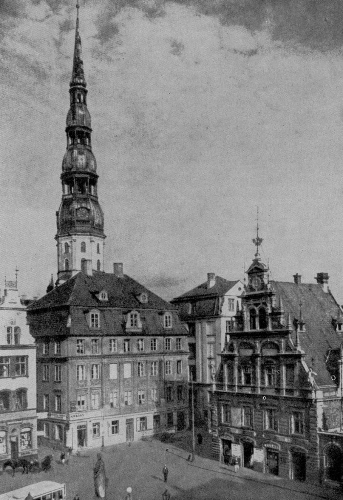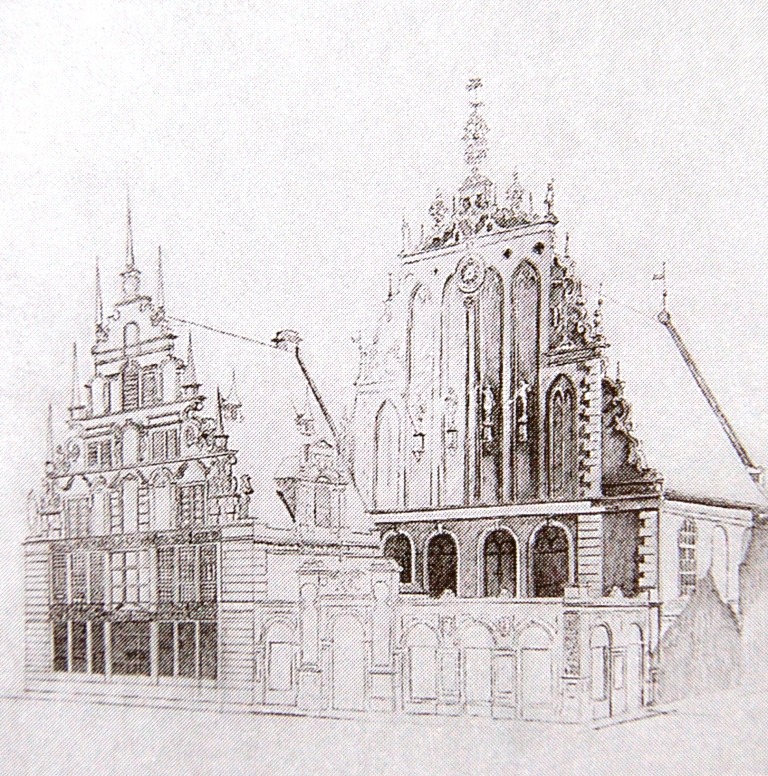 Маленький земельный участок на Ратушной площади появился вместе с Новым домом. Именно так в 1334 году называли знакомое нам здание дома Черноголовых. История его появления была достаточно печальной – в очередной битве с Ливонским орденом проиграла Рига. В прошлых схватках горожанам удалось разрушить старый рыцарский замок на месте теперешнего Двора Конвента и выгнать рыцарей, но теперь им предстояло возвести для них новый замок, причём за свой счёт. Кроме того, победители забрали у рижан здания обеих гильдий, где устроили временную резиденцию ордена. Побеждённым рижанам пришлось уступить. Но жить без здания для собраний они не могли, кто его знает, сколько продлится возведение нового замка, да и отдадут ли рыцари им старые гильдии – не известно. Вот и решили купцы построить Новый дом, чтобы было где собраться и обсудить дела насущные.