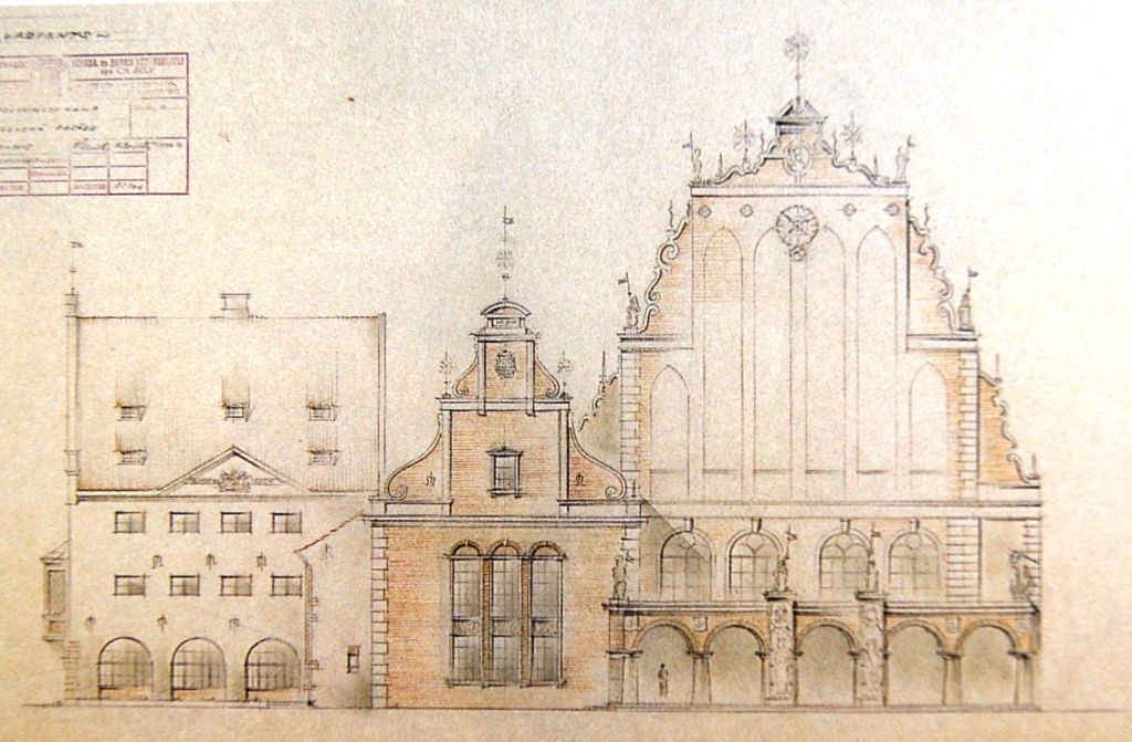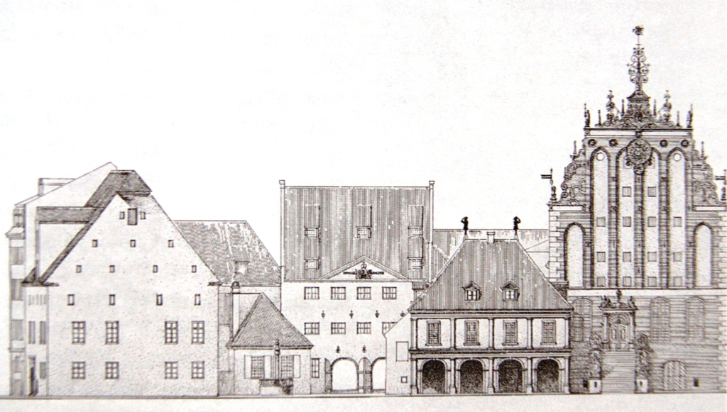 Строили тогда основательно и вместе с главным зданием возвели и вспомогательное. В доме, где часто собирались, заседали и пировали, существовала потребность в дополнительных помещениях для слуг, складов и уединения. О том, как это здание выглядело в то время, не сохранилось никаких свидетельств. Все известные нам изображения средневековой Риги сделаны со стороны Двины и столь маленькое строение просто растворялось в окружающей застройке. Со временем, веке эдак в XVI, домик расширили и он «вылез» на Ратушную площадь.