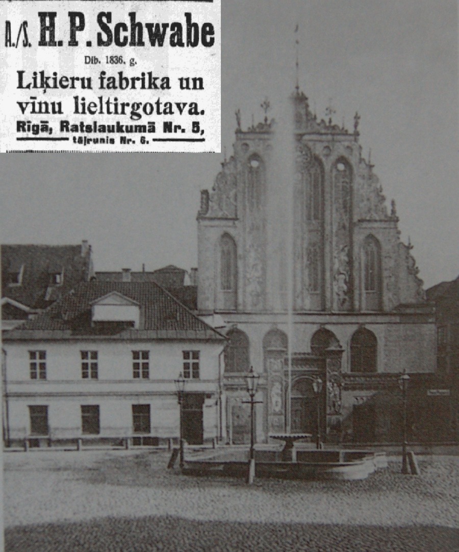 С 1842 года неказистый домик переходит к виноторговцу Х.П.Швабе. Ему принадлежала довольно преуспевающая фирма и ликероводочная фабрика. Предприятие было весьма популярно в Риге и вскоре здание подле дома Черноголовых получило известное и сегодня прозвище «дом Швабе». Предприятие и магазин просуществовали на Ратушной площади вплоть до начала Второй мировой войны, занимая то одно, то другое здание. Что же до интересующего нас дома, то в 1889 году его вместе с винной торговлей приобрел купец Эмиль Шмидт.