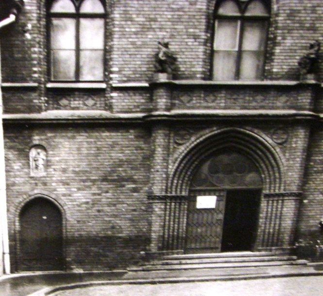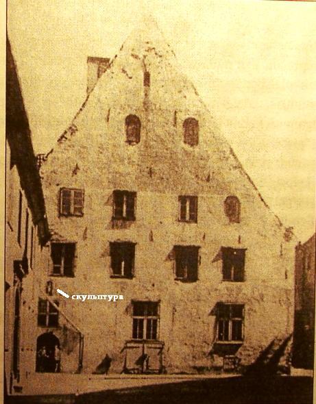 Наткнулись бы мы с вами на неё сразу же, как открыли ту самую книжку Неймана, ведь после того, как он описывает барельеф с рыцарем, он пишет; «над западным входом в крестовую галерею в маленькой нише стоит скульптура каноника с книжкой в руке, но она не очень ценная». То, что скульптуру автор описывает вместе с барельефом, указывает скорее всего на то, что она так же относится к 15-16му веку. Всё, на этом информация заканчивается. Есть лишь несколько фотофактов говорящих об этой скульптуре. В музее истории Риги и мореходства хранится фотография здания, стоявшего на месте музея. На ней отчётливо просматривается маленькая ниша со скульптурой над входом в крестовую галерею.