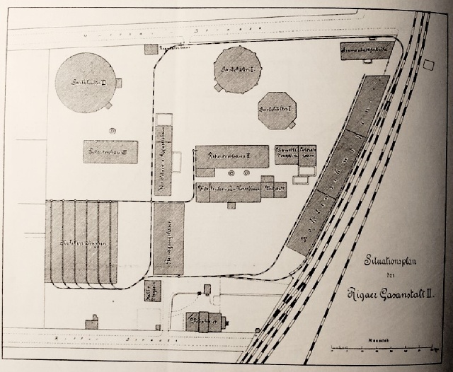 Вскоре был построен газовый резервуар на Мукусале, чтобы обеспечить газом население Пардаугавы. Трубы для этого резервуара проложили под пешеходным настилом нового железнодорожного моста. А летом 1874 года началось строительство нового газового завода в квартале между улицами Бруниниеку и Матиса. Здесь было много места, и со временем этот завод разросся настолько, что смог обеспечивать всю Ригу. Здания первой городской газовой фабрики стали не нужны. К тому времени эволюционировали и сами фонари, до 1896 года в Риге повсеместно использовались простые газовые горелки, но потом все горелки были заменены на специальные светильники с раскалённым газом. Такой способ освещения был гораздо эффективнее простых горелок. В 1903 году общая длина газопровода достигла уже 89,1 км, а общее число фонарей в городе было 1818.