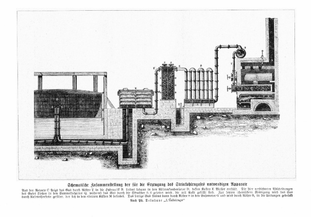 Изначально газовый завод был рассчитан на выработку 2 тыс. кубометров газа в день. Но уже при строительстве была заложена возможность расширить выработку газа до 5,7 тыс. кубометров в день. Изначально общая длинна проложенных газовых труб была 28,3 км, а общее количество фонарей составило 678. Но развитие Риги оказалось более стремительным, и уже к 1871 году потребление газа выросло настолько, что на 60% превышало максимальную мощность газового завода. Фабрику несколько раз расширяли, но качество вырабатываемого газа от этого сильно страдало.