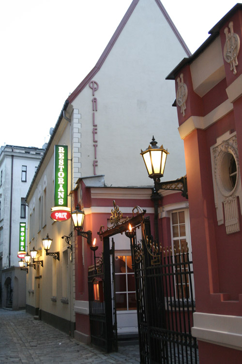 Гостиница «Vecrīga» и вход в ресторан «Palete» в начале XXI века