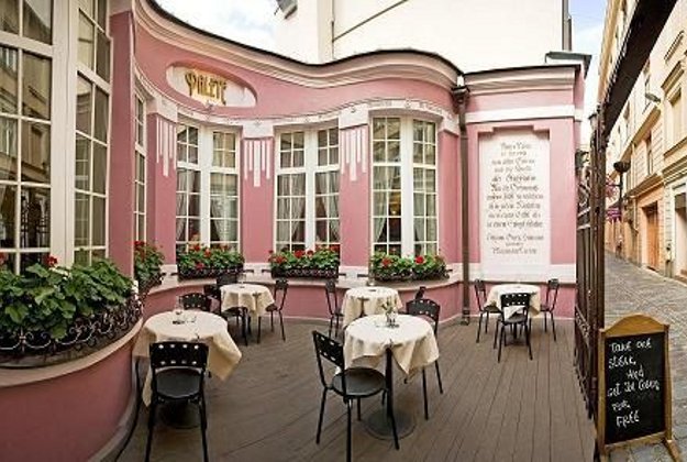 После открытия пресса пестрила восторженными эпитетами: «Такое ощущение, что здесь вот-вот появятся дамы в шляпах с широкими полями и кружевными зонтиками», «Наконец-то рижане смогут отведать лучшего кофе в чисто рижском кафе». Кафе и вправду зазывало гостей хорошим выбором напитков и «пикантными фирменными блюдами». С тех пор в здании старой ювелирной мастерской вот уже второй десяток лет можно вкусно поесть. Название для заведения в своё время выбрали очень удачное «Palete» – палитра. А как же ещё может называться кафе на улице Художников?!
