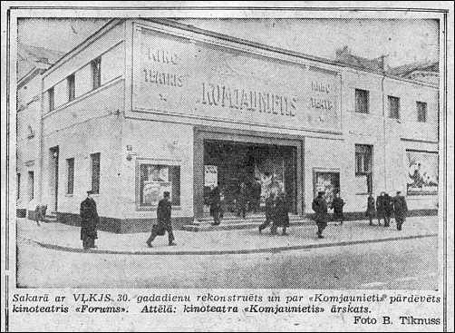 Кинотеатр «Форум» реконструирован и переименован в «Комъяуниетис» (1948 год)