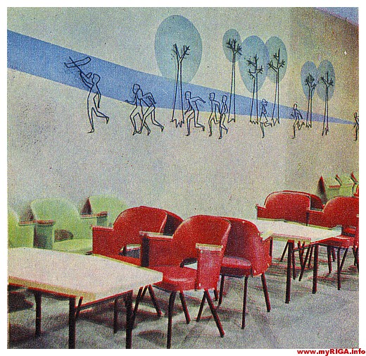 Благоустроенное фойе кинотеатра «Комъяуниетис» (1952 год)