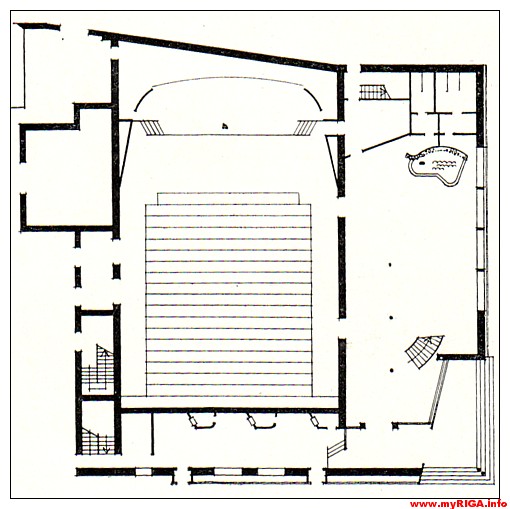В фойе верхнего этажа были оборудованы помещения для активного отдыха кинозрителей: читальный зал, комната для игры в шахматы и шашки. В читальне ежедневно имелись свежие газеты и журналы, издающиеся в Риге и Москве.