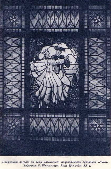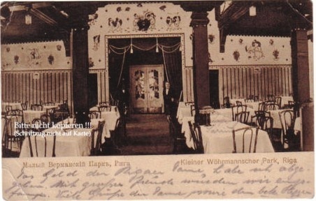 Интересно был оформлен интерьер ресторана. В потолке главного зала были устроены широкие просветы. Здесь в 30-е годы ХХ века разместили красочные витражные плафоны, выполненные по проекту художника-витражиста Екаба Шкерстиньша. Темой для витражей послужило празднование народного латышского праздника Лиго. Такой выбор обуславливался тем, что ресторан стал излюбленным местом собрания латышей.