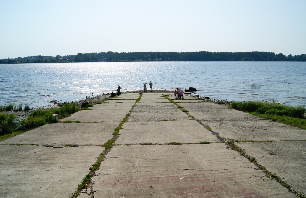 Рядом с прудом сохранился большой бетонный пандус, как шутят местные, «полувоенного происхождения».