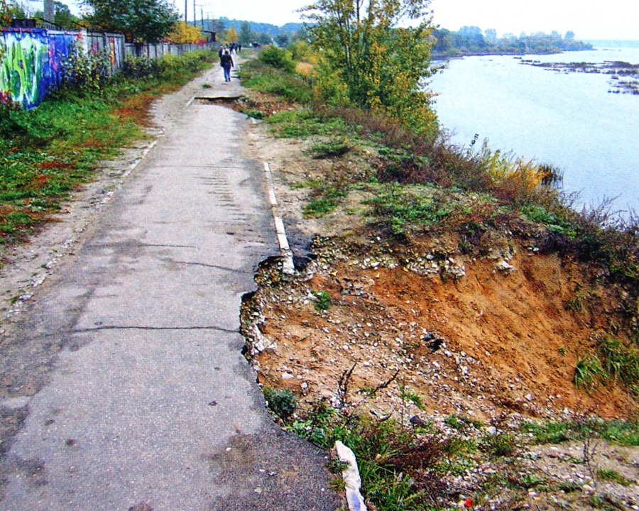Далее следует, пожалуй, самый многострадальный участок променада– вдоль забора фабрики «Квадрат». Ещё недавно здесь осыпался берег и дорожка грозила навсегда скрыться в водах Даугавы.