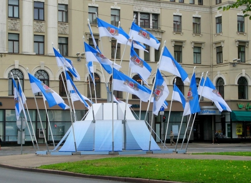 С тех пор двухцветный флаг стал неотъемлемой частью облика Риги. С 1990 года в него, вернее в герб Риги, вернулись крест и корона, свидетельства того, что когда-то город принадлежал архиепископу и различным монархиям. Синий и белый снова вошли в жизнь Рижан, в эти цвета раскрашены городские автобусы, трамваи и троллейбусы, как и много лет назад, двухцветными флагами отмечены городские учреждения. Белым и синим подсвечивается один из самых красивых городских мостов – железнодорожный. Рижский бело-голубой флаг – не только символ города, но и историческое свидетельство, хранящее историю нашего города.