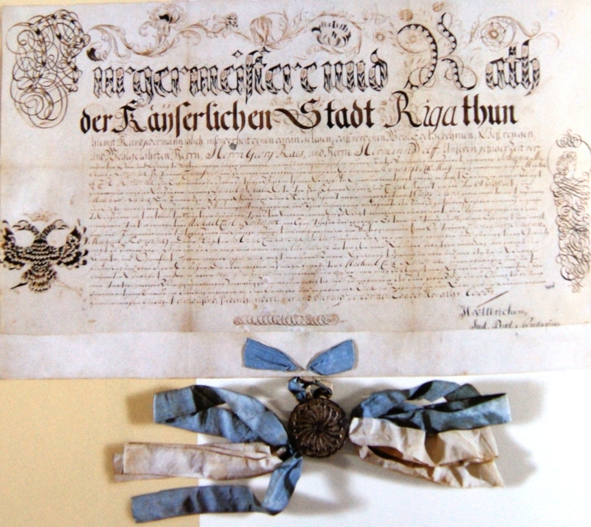 Свидетельство о рождении, выданное рижским ратом в 1734 году