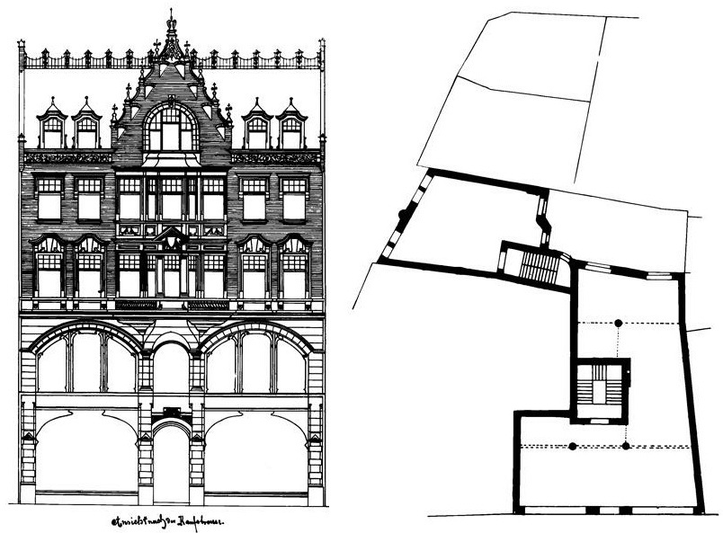 Старое здание снесли до основания, а на его месте по проекту архитекторского бюро Шель и Шеффель был выстроен новый пятиэтажный дом. Рижские архитекторы разработали техническую часть проекта, а вот рисунок фасада Деттманн заказал земляку: любекскому архитектору Карлу Гану. Строительство началось в 1900 году. Когда расчищали подвалы на участке, то нашли несколько интересных деталей средневекового дома, которые, по настоянию владельца, передали в городской музей. Возведение нового здания привлекло немалый интерес рижан. И дело вовсе не во внешнем виде здания, тогда о нём ещё мало что было известно. С самого начала строительства всю площадку проводившая работы фирма «Р. Хойзерманн» обнесла дощатым забором с навесом для защиты пешеходов. Сейчас такие меры считаются у нас нормой, но для 1900 года это было в новинку. Газеты того времени утверждали, что видят такое впервые в Риге и требовали, чтобы и другие строительные фирмы следовали примеру Хойзермана.