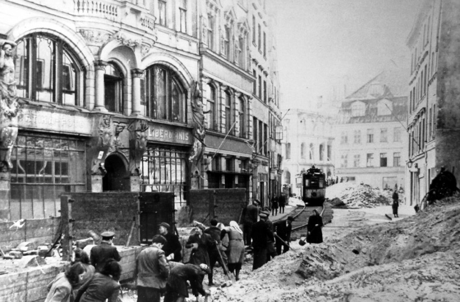 Как знать, может быть, именно эта скульптурка уберегла дома Деттмана от разрушений во время двух мировых войн. После ужасов Второй мировой войны улицу Тиргоню было не узнать: погибла практически вся нечётная часть улицы, в руинах лежали дома у Ратушной площади. Руин было столько, что специально для их разборки на улицу провели временную трамвайную линию, положив рельсы прямо на мостовую. В советское время дома заселили и только помещениям старых магазинов достойного применения не нашлось. Ситуация изменилась лишь к концу 1960-х годов.