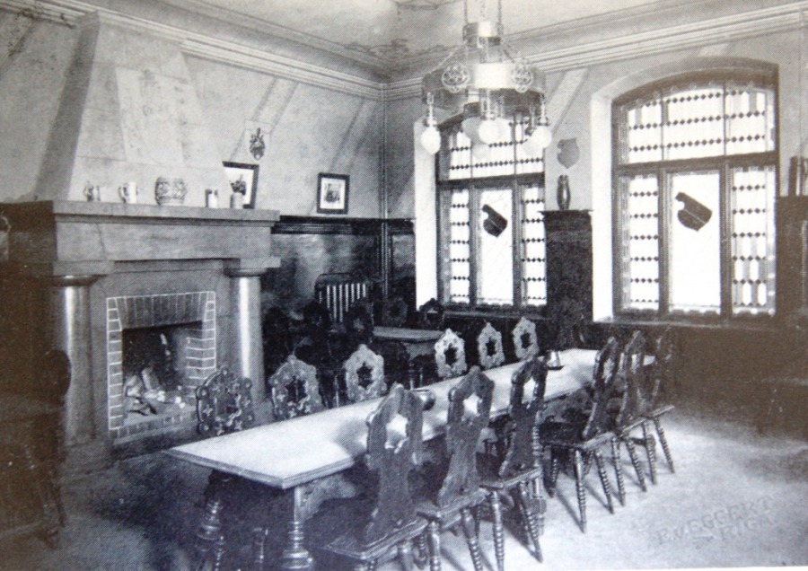 В подвале здания также были помещения кухни, кладовые и котёл парового отопления. На первом этаже здания разместилась комната для торжеств с камином, вестибюль с лестницей, туалеты, а так же переход к корпусу со стороны улицы Алдару. Весь второй этаж здания занимал просторный зал торжеств с балконом для музыкантов, под которым скрывалась оружейная комната. Корпоранты любили состязаться в фехтовании и стрельбе и здесь хранились различные шпаги, рапиры и пистолеты. На третьем этаже были библиотека, комната конвента (совета) корпорации и архив. 27 ноября 1911 года «Concordia» переехала в новые помещения.