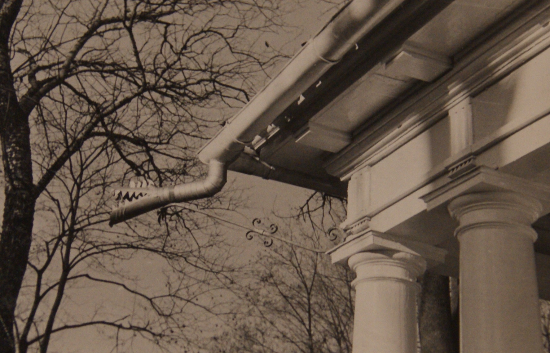 Подойдя ближе, замечаешь, что водосточные трубы у дома весьма необычные: они оформлены в виде сказочных драконов, только вот вместо традиционного огня из их пасти льётся вода. Если подумать, то это совсем не так странно. Подобные драконы украшали многие здания в стиле классицизм. Самым известным из них, пожалуй, был построенный по проекту Кристофера Хаберланда дом Холландера на Ратушной площади. На многих старых гравюрах видно, что некогда его также украшали водосточные трубы, украшенные восточными чудовищами.