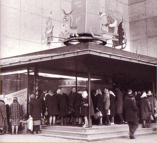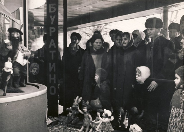 Витрина у главного входа в "Детский мир". 1970-е годы.
