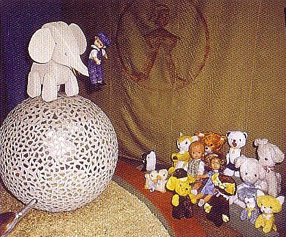 Игрушечный конь-качалка, раскачивающийся на вертящемся круге, и лиса, балансировавшая на одной ноге. Вся композиция могла поворачиваться во все стороны. Потом был ещё белый слон с всадником на большом блестящем шаре.