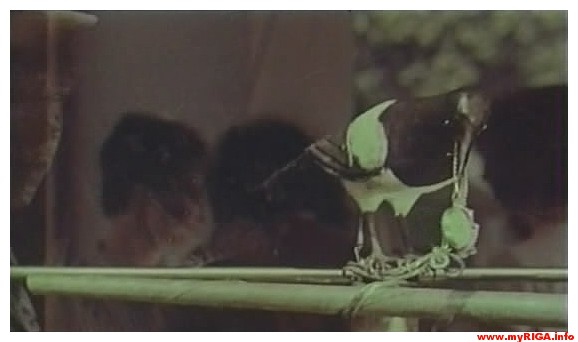 Сорока в витрине магазина "Перле". Кадр из фильма "Часы капитана Энрико".