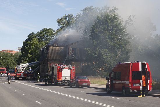 Kā informē VUGD preses sekretāre Inga Vetere, degošā nama adrese ir Daugavgrīvas iela 37. Uguns apņēmusi 100 kvadrātmetru platību