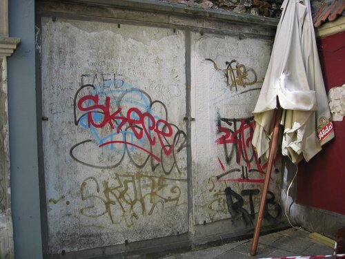 И ведь не первый день эти надписи "красуются" здесь. И тоже никому никакого дела нет. А ведь эти кощунственные надписи ежедневно лицезрят как жильцы, так и работники ресторана — они отдыхают рядом.