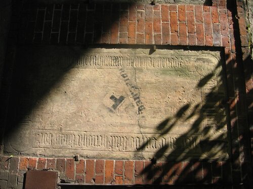 Рядом с Домским собором на стене можно увидеть старинные каменные плиты — надгробные плиты.