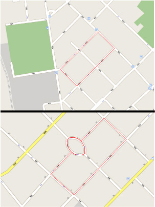 Здесь были даны два перевернутых фрагмента карты с начерченными на них траекториями: