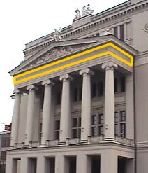 Декоративный элемент в виде горизонтальной полосы или ленты, увенчивающая или обрамляющая ту или иную часть архитектурного сооружения.