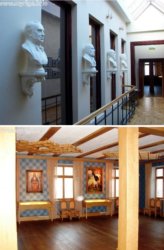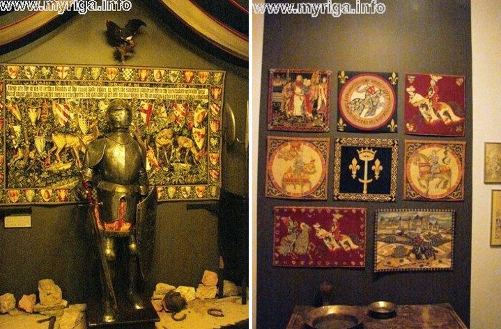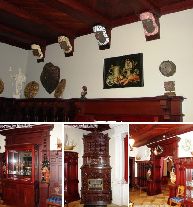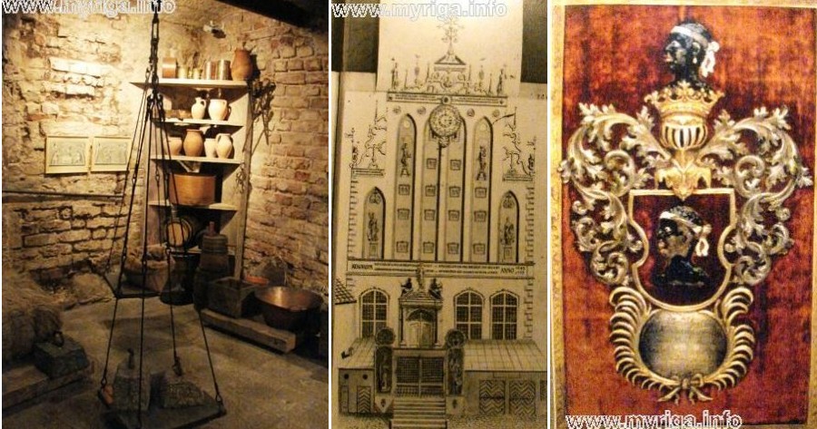 В первой комнате Дом Черноголовых в 14-16-м веках и различные предметы купцов