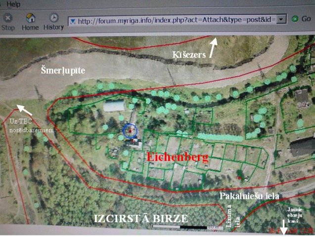 Синий кружочек – не мой, но где-то в этом месте и была расположена «архиерейская дача», в которой жил и в октябре 1934 года был убит глава Латвийской православной церкви архиепископ Иоанн Поммер (Svētais Rīgas Jānis).