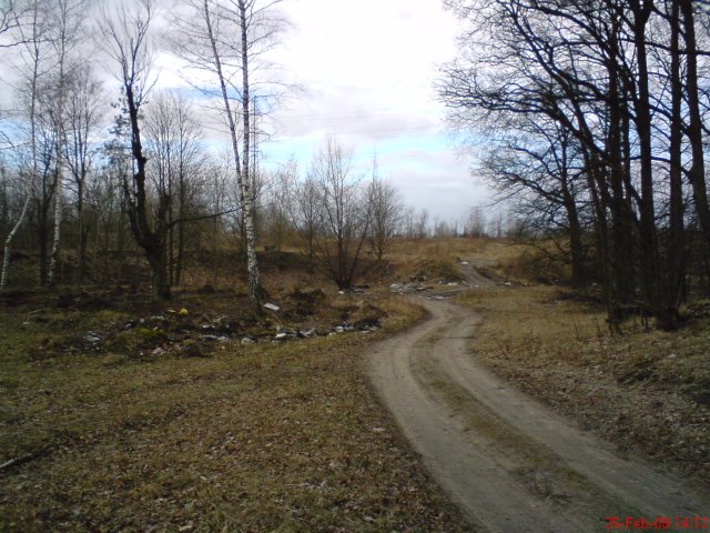 Вид с ул. Lizuma. Впереди – вырубленная роща, за ней – Ozolkalns (Eichenberg), за спиной – кладбище.