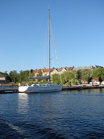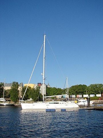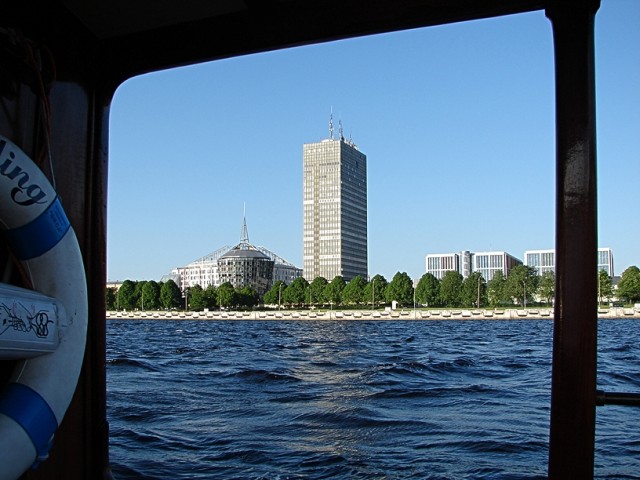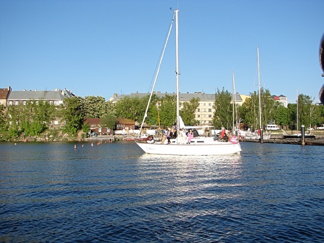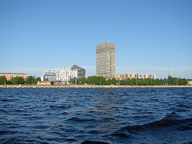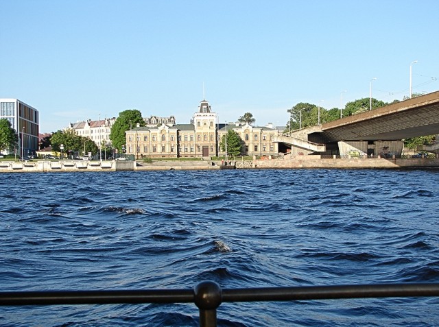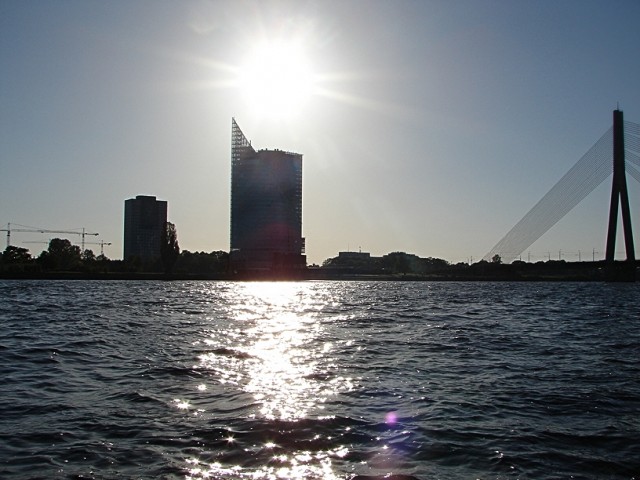 И в такой солнечный день с борта маленького кораблика видно, что не зря небоскрёб "Swedbanka" прозвали зажигалкой!