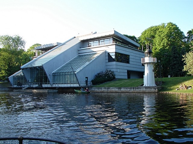 Из окон кораблика или с его открытой палубы можно рассмотреть и лебединый домик на берегу канала.
