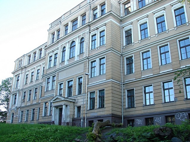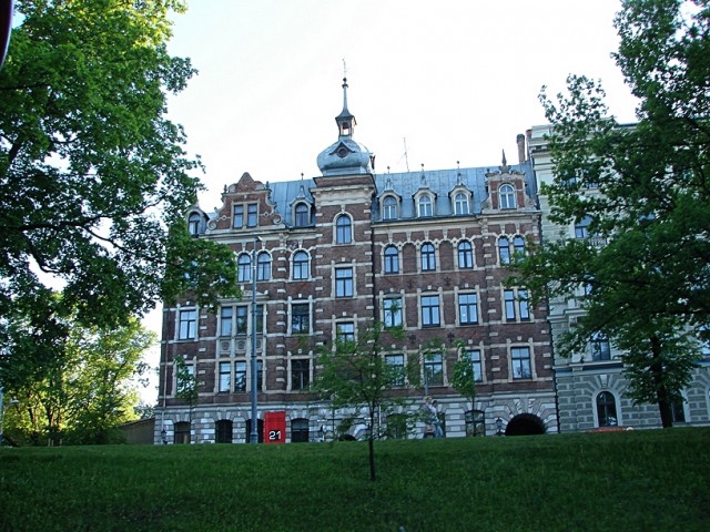Дальше- величественное здание лабораторного корпуса Латвийского университета.