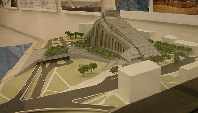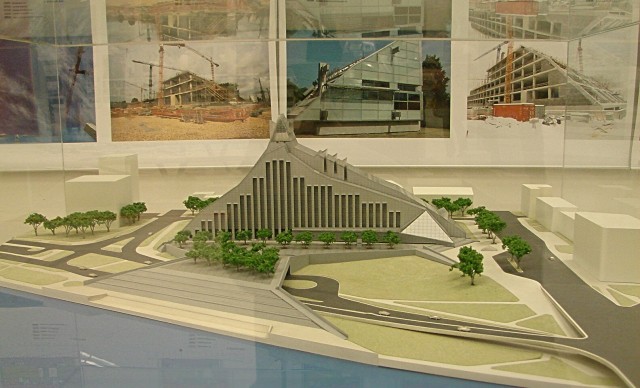 Тут на первом плане, конечно же, "Дворец тьмы" — национальная библиотека. На выставке на неё можно полюбоваться со всех сторон.