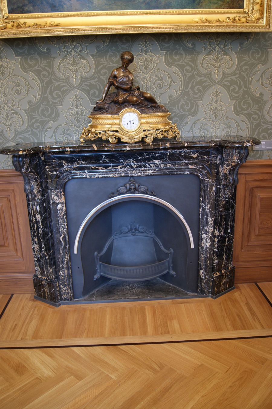 После пожара этот камин засыпало снегом, и гипсовые украшения сохранились только на фотографиях.