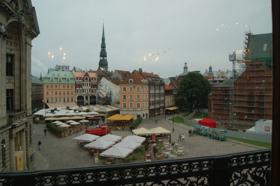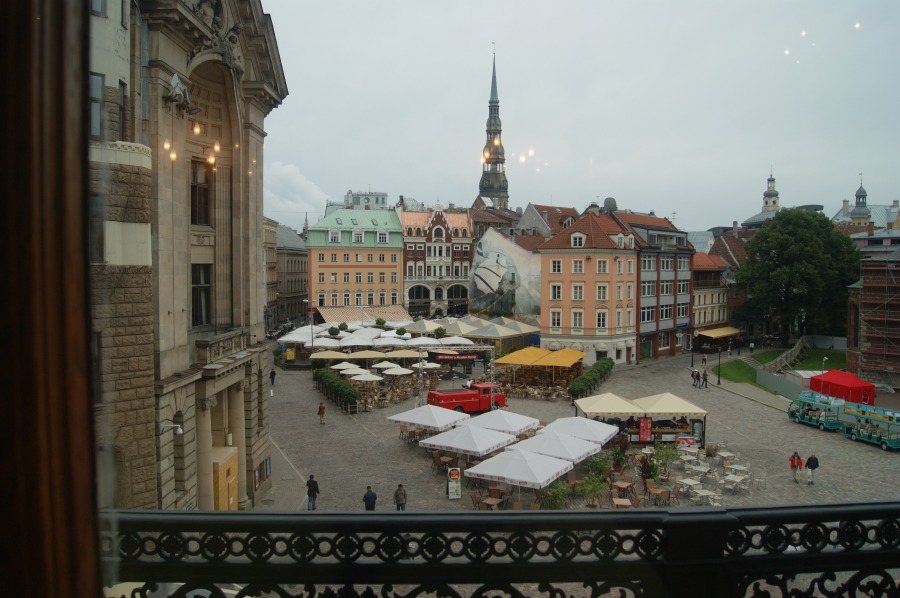 Из внутреннего двора можно попасть в подвальный этаж. Кроме служебных помещений и закрытого, пока ещё, ресторана здесь расположилась небольшая экспозиция по истории рижской биржи.