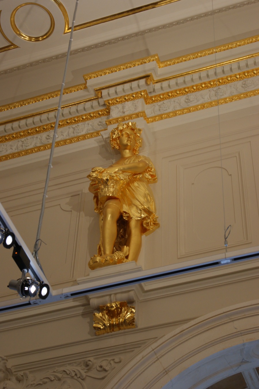Особенно следует отметить т.н. «Венецианский» зал, своды которого поддерживают шестнадцать позолоченных скульптур.