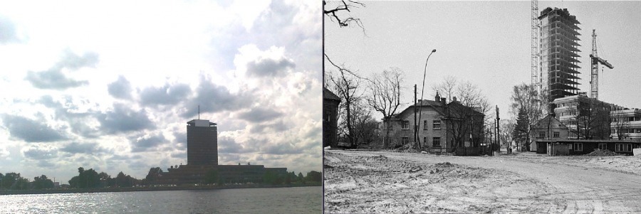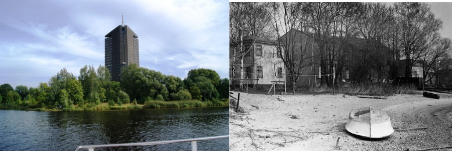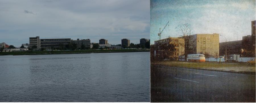 Напротив, на Закюсале, расположился комплекс телецентра. Он пришёл на смену одноэтажным домикам Даугавских рыбаков.