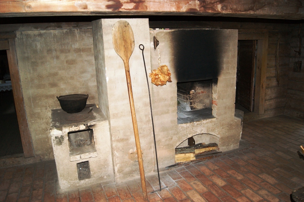 Здесь всё как в старину. Дом разделён на две части — хозяйственную и жилую. В центре дома стоит старая печь.