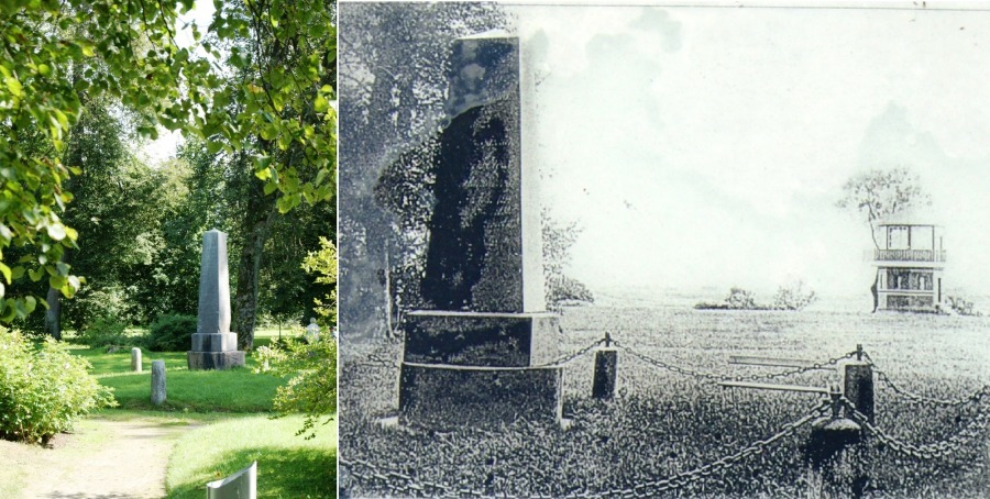 За этнографической частью парка находится старинный обелиск с именами владельцев усадьбы острова Долес. Это представители остзейского баронского рода Лёвис оф Менар.